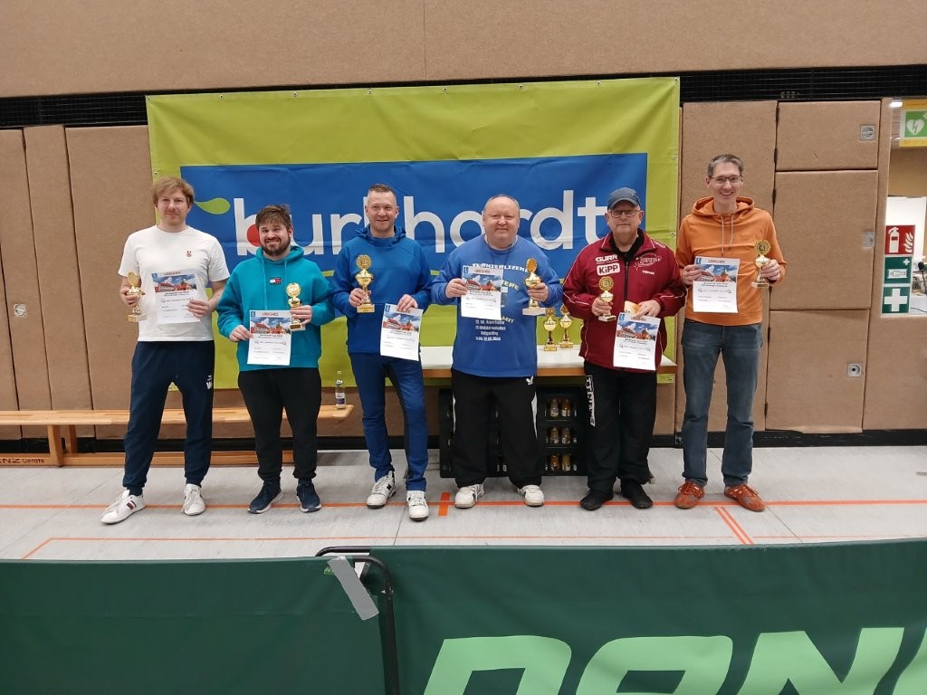 Um 9 Uhr begann die B-Klasse mit QTTR Wert 1351 bis 1550 Punkte und um 12 Uhr starteten dann die Herren C mit QTTR Wert 0 bis 1351 Punkte. In beiden Klassen gab es jeweils 14 Zweier-Teams die um Pokale, Sachpreise und Urkunden kämpften. Leider waren die Anmeldungen nicht so zahlreich wie es sich die Verantwortlichen erhofften. Dazu kamen noch etliche kurzfristigen Absagen, so dass am Ende nur insgesamt 28 Teams spielten.