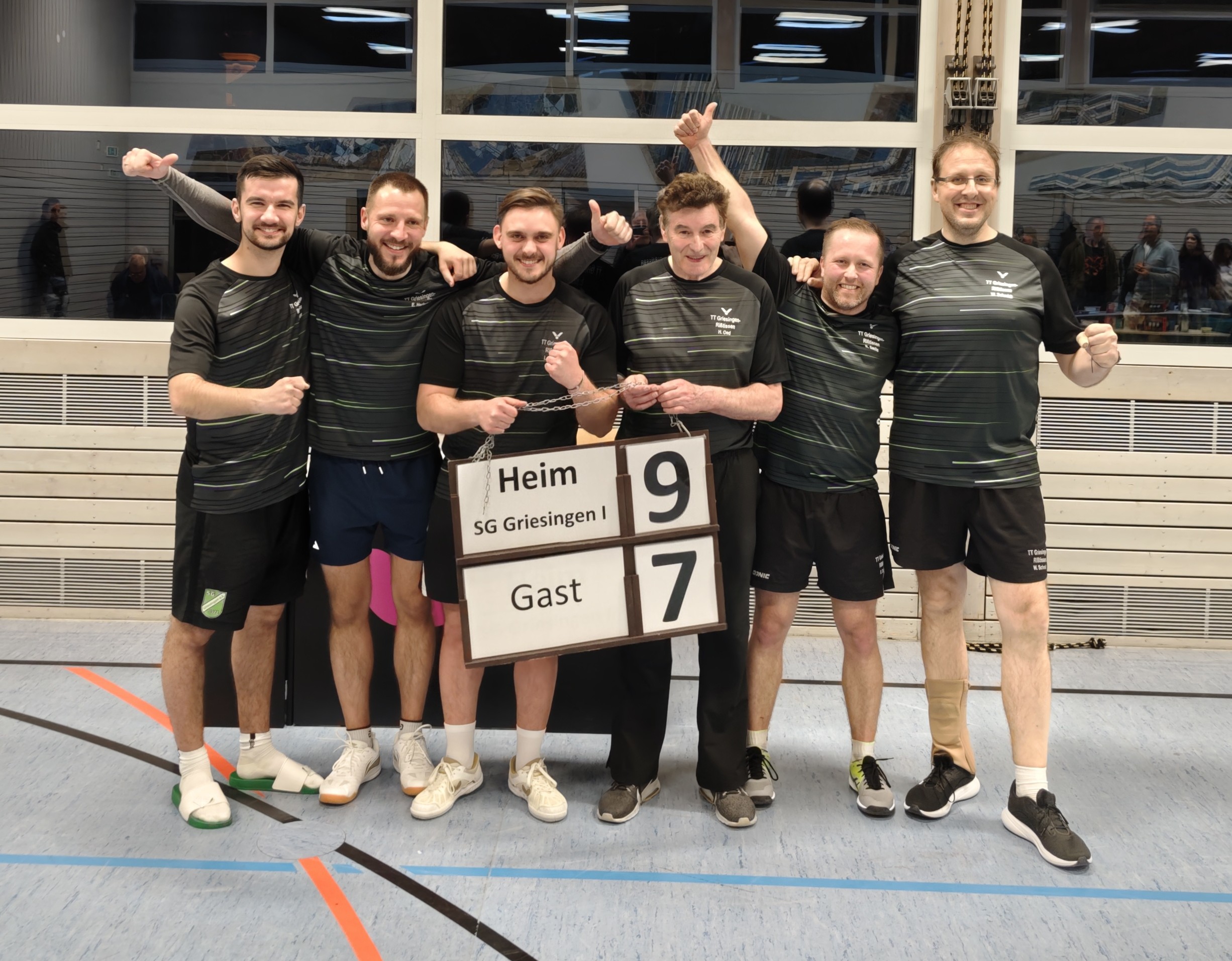 Der Meister "unserer" heimischen Bezirksliga im Bezirk Ulm heißt TT Griesingen-Rißtissen (SG). Die ambitionierte Spielgemeinschaft setzte sich im Spitzenspiel Erster gegen Zweiter zu Hause gegen Berg im Nachbarschaftsduell mit 9:7 durch. Es wird spannend zu sehen, inwieweit sich um ihre drei Topspieler herum ein landesklassetaugliches Team etablieren kann und wird zur neuen Saison. Herzliche Glückwünsche zur Meisterschaft und ein gutes Gelingen in der neuen Liga.